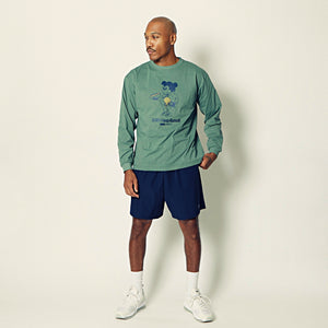 今回のTEEシャツで採用された生地は、吸湿速乾性の機能のついたポリエステル素材で、伸縮性もあり肌触りが良いのが特徴です。また、定番のサイドオープンパンツは裾の仕様を変更してドローコードによるシルエット調整が可能となり、より快適な着用性を実現しました。