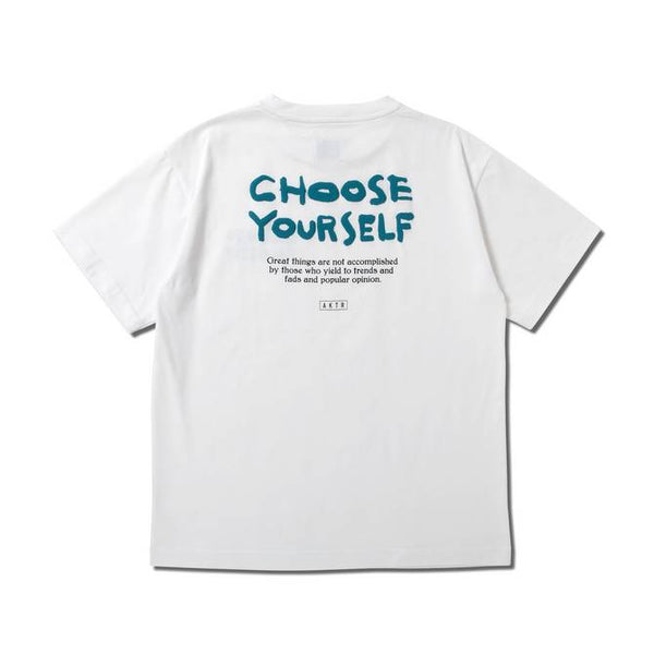 design:AKTRのタグライン「CHOOSE YOURSELF」を前後に配置した半袖TEEシャツ。